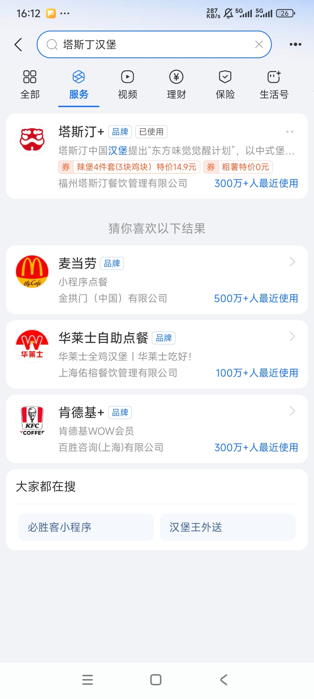 支付宝服务号搜索塔斯丁首单0部分还有一个免吃卷凑单低价吃一顿汉堡大餐!到手两个汉堡一个一杯可乐!