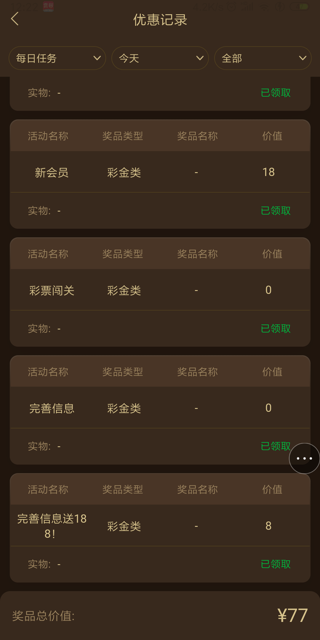 完成新人任务可领取8彩金