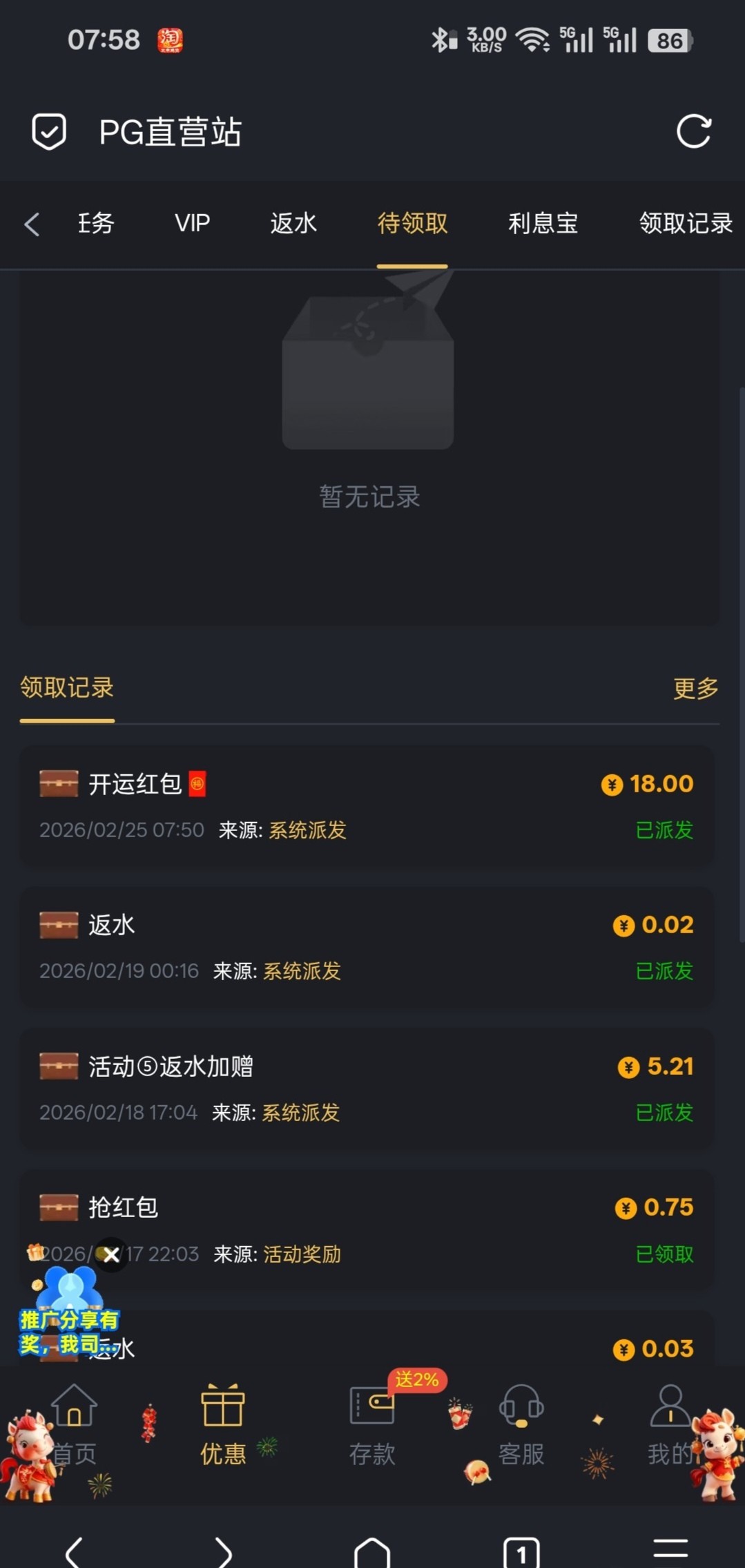 好运金2个号都收到了18,充值过的去看看