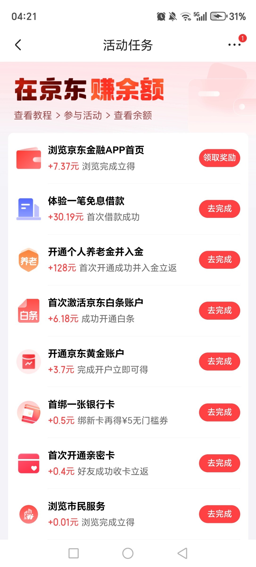京东app去点钱包然后点余额,首次开通有几块钱都是可以直接提现到银行卡的,还有一系列任务我发的图金额少任务少是因为我已经薅了好几个号了我是隔断时间注销在注册又能薅一次,这个新人没用过的也能薅个30块往上现金,都是可以直接提现到银行卡的
