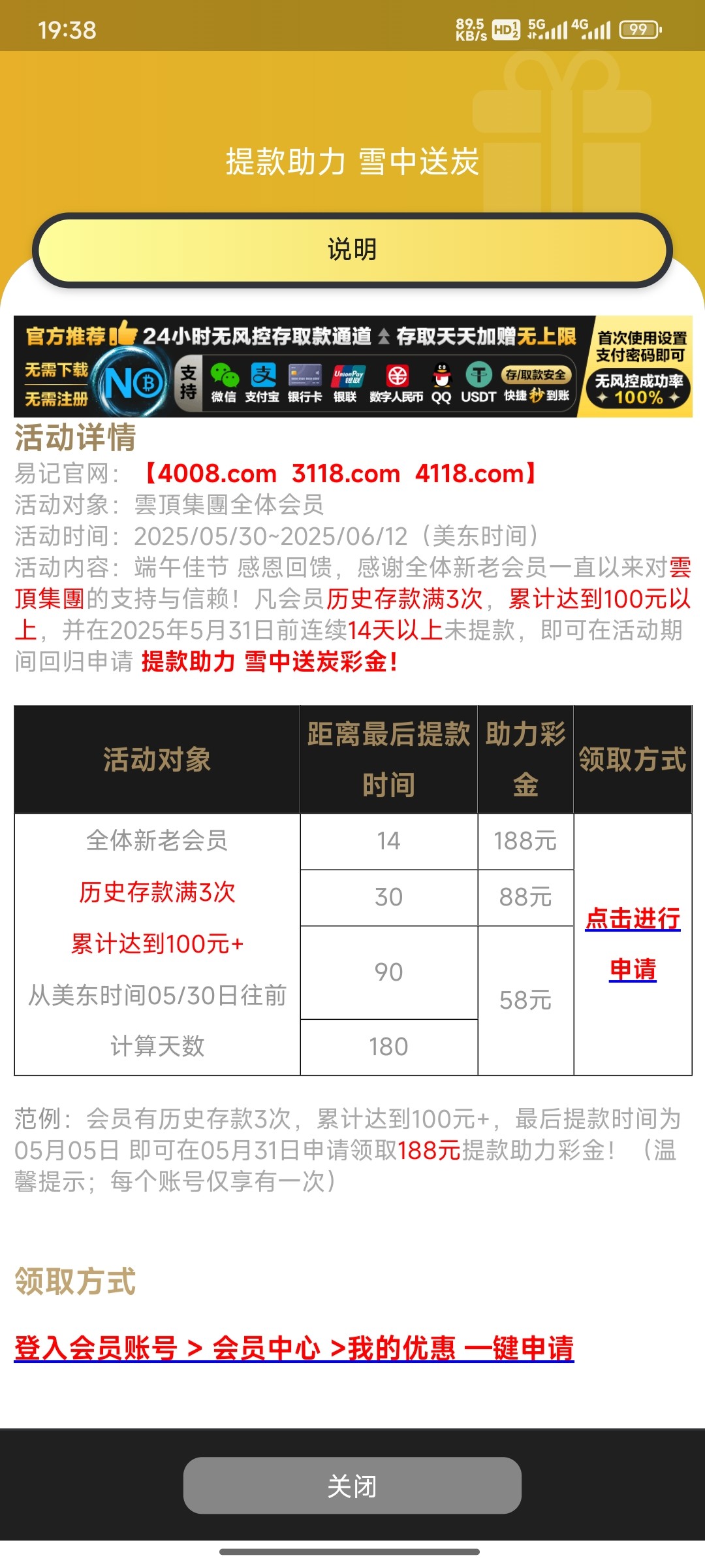 云顶集团 端午回馈 历史存款3次存款100可以去申请 活动看图 地址 4008.com