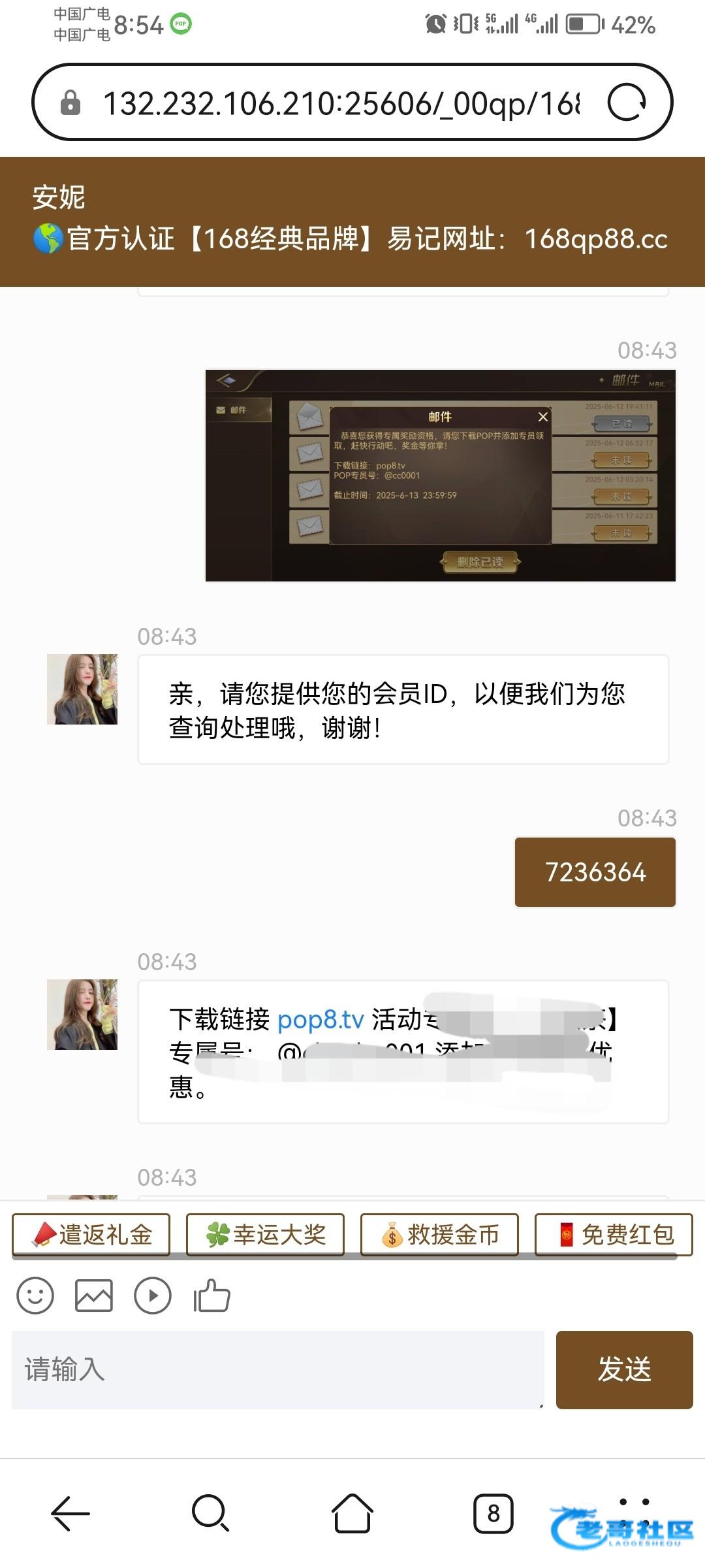 前面有人发过了,在发一次交流详细点的 ,下载下那个168棋牌 qp168.com下载绑定手机号和支付宝或者卡都可以!等个半天,会有客服给你发站内信叫你加专属客服的pop!客服会帮你接码的,不要直接找客服,客服会让你充值了帮你接码。
