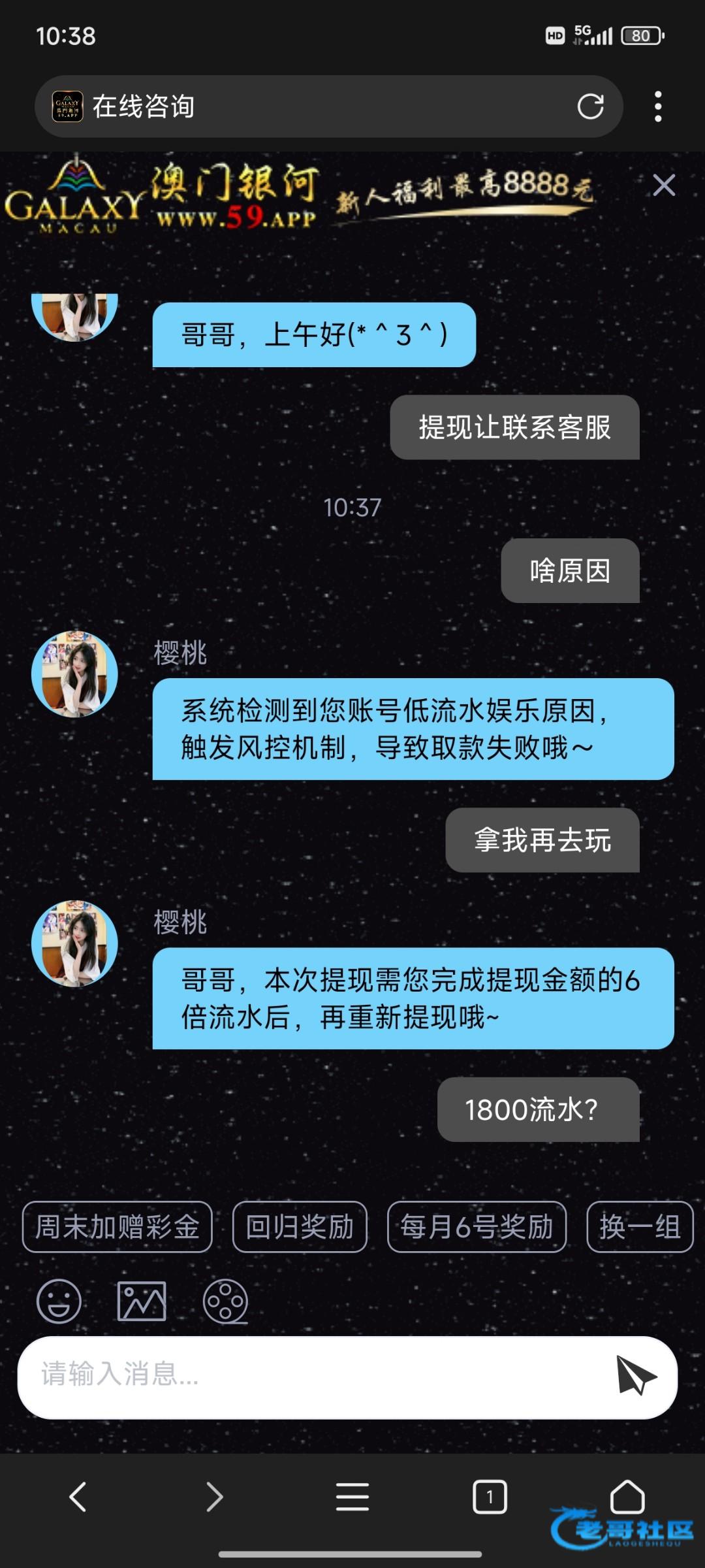 打了300流水,提现300,就罚1800流水,黑台了