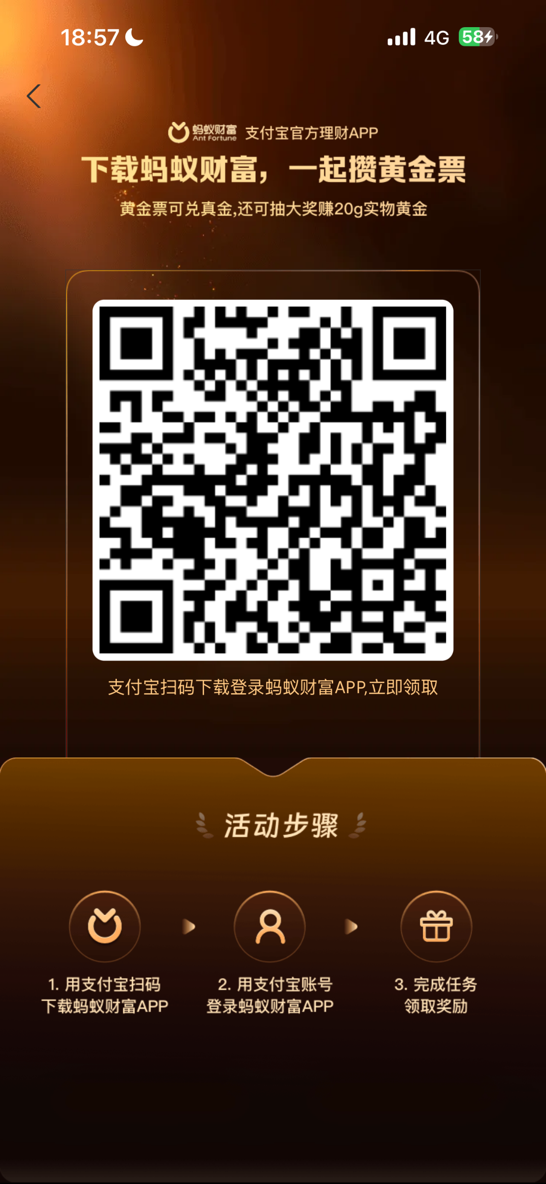支付宝搜索🔍黄金票有任务!扫图下载获奖抽!
